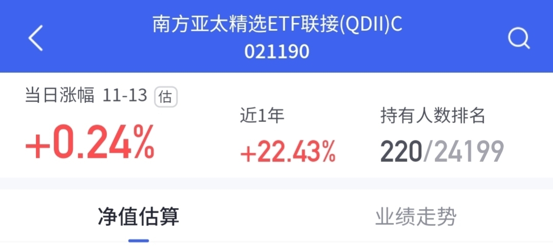 今日市场大调整,几乎全在跌,还好我持有的$南方亚太精选ETF联接(QDII)C$ 撑住了!今天估值逆势上涨0.24%,妥妥靠它拯救了今日收益这只基金精准网罗海力士、三星等亚太行业龙头,一键打包半导体、高端制造等核心优质资产,正好牢牢接住了亚太区域复苏的红利,太庆幸当初的选择了!