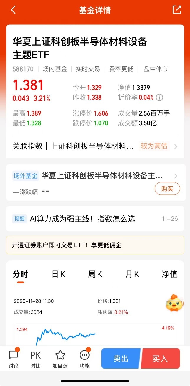 看好$华夏上证科创板半导体材料设备主题ETF发起式联接C$的向上趋势,这只是全市场第一家布局半导体材料设备标的的产品,场内半年就涨了快40个点,业绩弹性更佳,看今天的走势肯定要吃大肉了