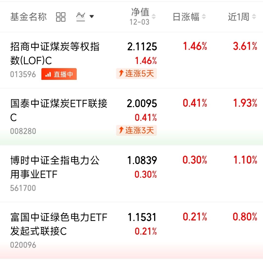 震荡市最怕净值过山车,,煤炭是工业和供暖的刚需能源,需求稳得很,对应板块波动本来就小。不管市场怎么上蹿下跳,煤炭基金都能稳住阵脚$招商中证煤炭等权指数(LOF)C(OTCFUND|013596)$昨日上涨1.46%。