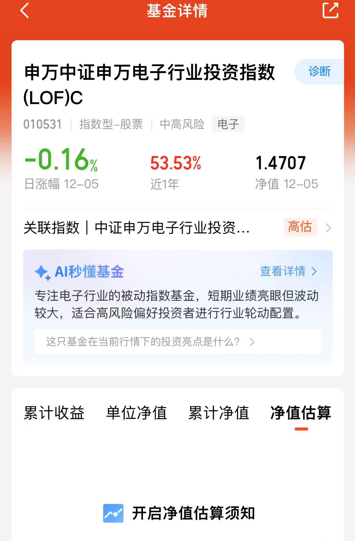 $申万中证申万电子行业投资指数(LOF)C$,这是一只密切跟踪电子指数的产品,今
