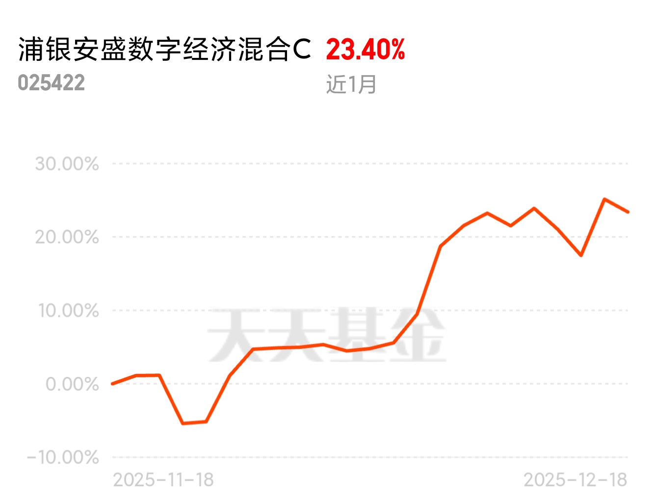 A股年底想补涨还是得看CPO,但是弹性大需要拿得住,而且得选主动基,浦银安盛数字经济就很不错,能涨抗跌$浦银安盛数字经济混合C$