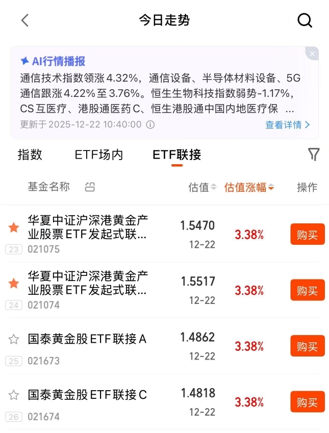 黄金板块在新一周开盘即迎来上涨,当前强势反弹3%+,$华夏中证沪深港黄金产业股票ETF发起式联接C$布局紫金矿业等潜力股,还好前段时间趁回调低吸了,这周开了个好头 ,加油冲