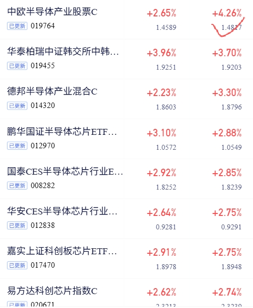 $国泰CES半导体芯片行业ETF联接C$ 2.85%。