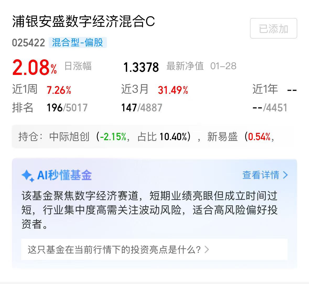 2.08%的单日涨幅,浦银安盛数字经济CPO布局再迎收获。$浦银安盛数字经济混合C$