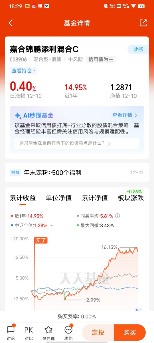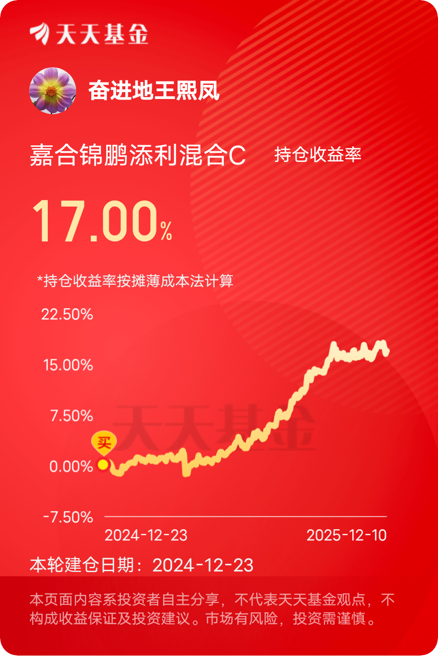 #12月基金投资策略# 我把嘉合锦鹏C当作重点关注标的。一方面它风格不极端,在震荡市中表现相对稳;另一方面,费率结构对我这种中短期持有也更友好,综合考虑后就决定入手了。$摩根双债增利债券C$ $易方达瑞享混合E$ $嘉合锦明混合C$ @糊里糊涂4号