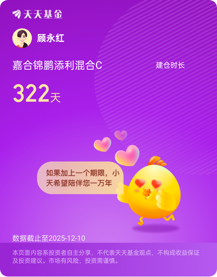 #12月基金投资策略# 我选择【五星基金】$嘉合锦鹏添利混合C$ 的理由:这只偏债混合型基金主投信用债,还适当配置股票资产,能守又能攻,近一年收益率14.75%(同类基金平均值5.81%),在同类基金中排名前5%,超额收益显著!$嘉合锦明混合A$ $嘉合锦程混合A$ $嘉合磐石A$ @基民123 @顺应趋势为本 @基民w386281N06