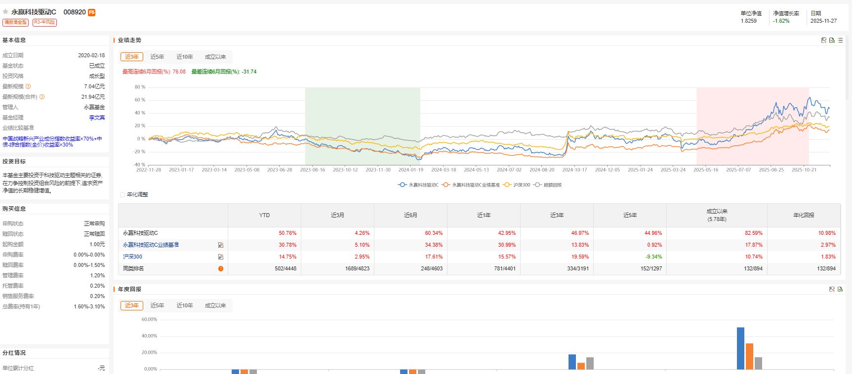 2025年11月13日我参加了天天基金的调研活动,这次邀请的是永赢基金的李文宾,他为我们详细解读了当前A股市场的现状、科技行业的发展趋势以及基金运作情况。下面来给大家介绍这只基金:永赢科技驱动C(008920),基金成立于2020年2月18日,目前基金A和C规模为21.94亿。