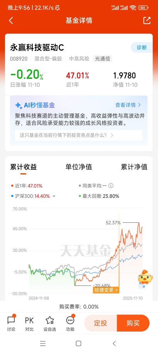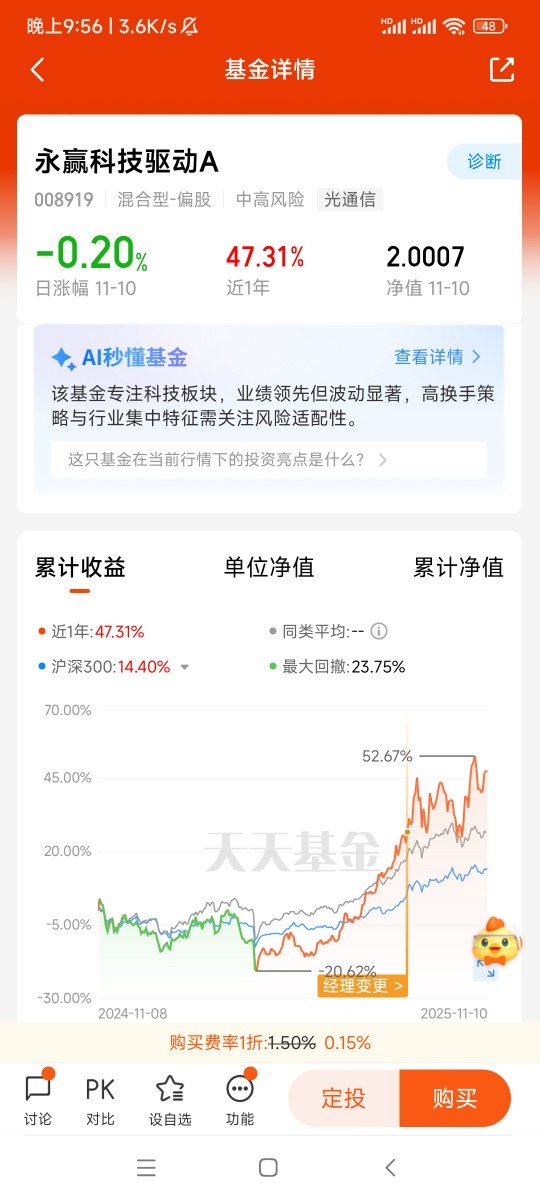 在科技板块成为市场主线但轮动加速的当下,普通投资者想要稳健参与投资,选择一只优质基金远比自行选股更为靠谱。永赢科技驱动C凭借基金经理的专业能力、亮眼的业绩表现和清晰的投资主线,成为科技板块投资的优选标的。而科学合理的加仓策略,能让我们在应对市场波动时更具定力。未来,我会坚定持有并持续加仓永赢科技驱动C,在科技产业的浪潮中,收获属于自己的投资回报。@永赢基金