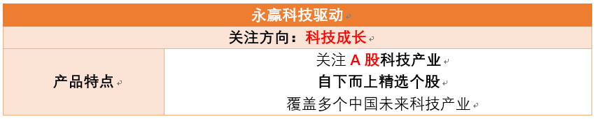永赢科技驱动主要关注科技成长方向,将自下而上全市场选股寻找优质科技产业标的。