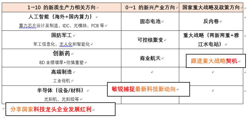人工智能方面,大模型企业不断更新升级模型,9月底以来海外龙头企业达成战略联盟,第一次打通了硬件和模型企业之间的协同发展壁垒。固态电池方面,在固态电解质、正负极、核心设备等领域国内企业不断取得突破。人形机器人方面,海外企业不断在机器人大脑及关键零部件领域取得突破,极大缩短了人形机器人产品落地的时间表。这些未来产业打开了人类科技进步的天花板,将有力推动生产力的大爆发。