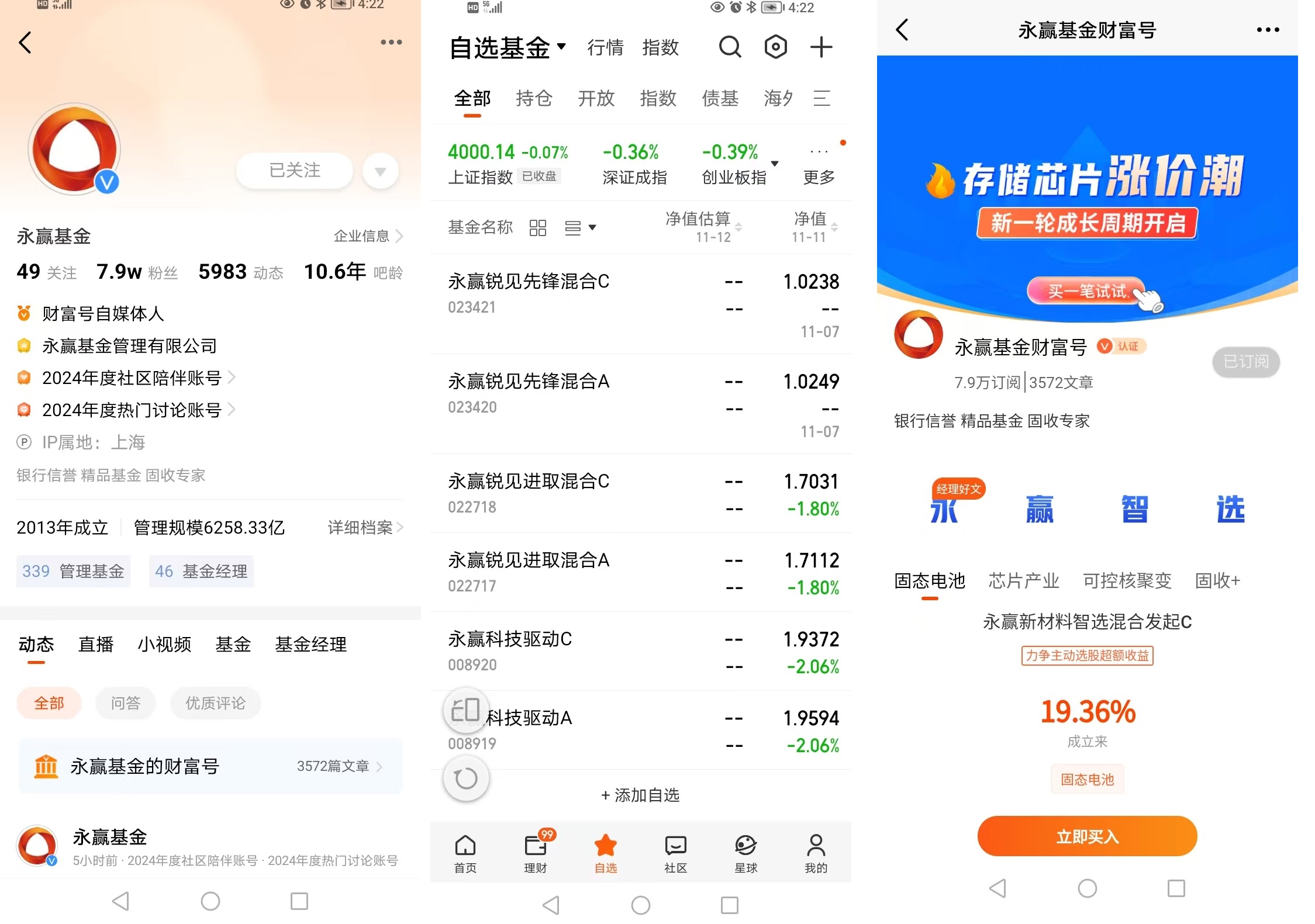 除了基金经理和持仓,基金公司也很重要。永赢基金是宁波银行控股的,这背景就够靠谱。
