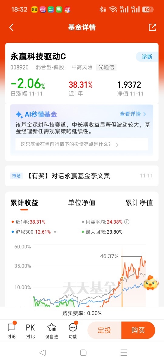 不过我的投资心得是“好基金也需好价格”。这只基金10月底刚经历过4.87%的单日回调,虽然长期业绩能打,但短期波动不小。我打算等它回调到近20日低点附近再分批建仓,用定投摊平成本。毕竟市场磨底期,不追高、不盲从,看清基金的持仓逻辑再出手,比单纯盯着收益率更重要——这也是我踩过几次热点坑后总结的教训。@永赢基金