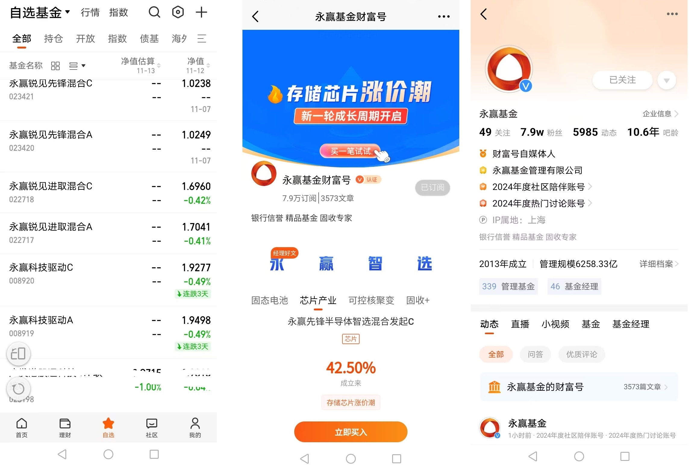 光基金经理厉害还不够,背后的基金公司也得靠谱。买基金看公司就像买布料看厂家,大厂家的布料不容易缩水,大基金公司的产品也不容易出问题。永赢基金是宁波银行旗下的,我们小区很多老人的退休金都存在那里,服务好、信誉也好,侄女说这叫“银行系基金”,资金安全有保障。