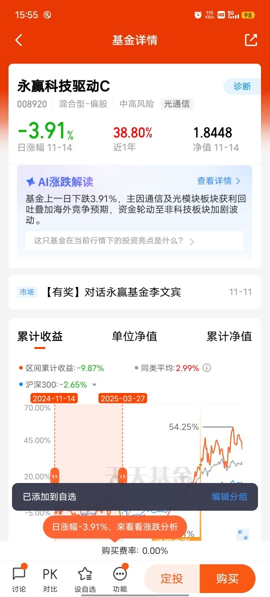 我觉得呢,永赢科技驱动 C 在投资方向、基金经理、业绩表现、费率以及公司支持等多方面都有优势,对于那些看好科技行业发展前景,想在科技领域分一杯羹的朋友们来说,确实是个值得考虑的投资选择。$永赢科技驱动C$ @永赢基金 @永赢基金 卢绮婷 @勤学苦练的厚道人
