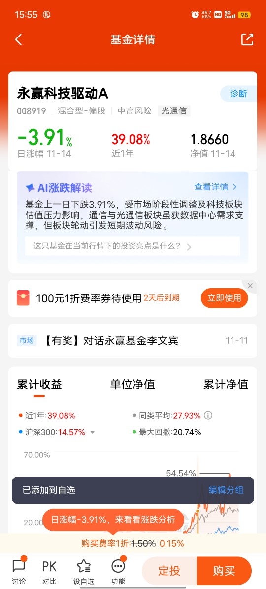 还有一点很关键,就是它的费率设置比较合理。对于咱们普通投资者来说,成本低就意味着能多赚点钱。有些基金光管理费就收得老高,可永赢科技驱动 C 在这方面就比较亲民,让咱们在享受科技投资红利的同时,不用被高额的费用吃掉太多利润。这样咱们就能把更多的钱拿去生钱,是不是感觉挺划算的?