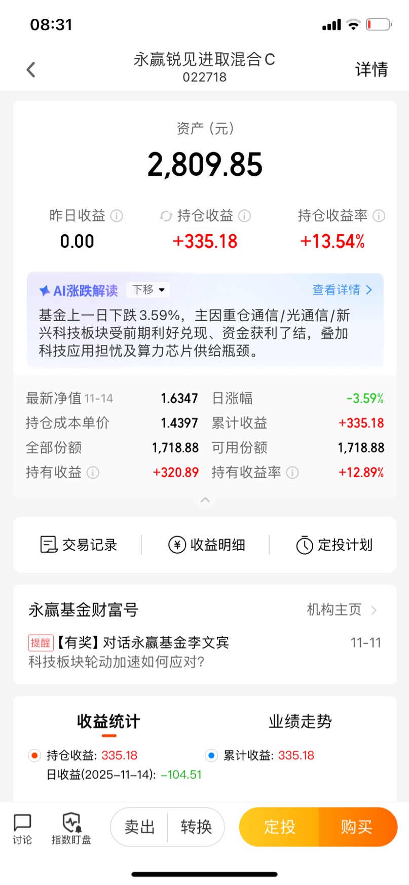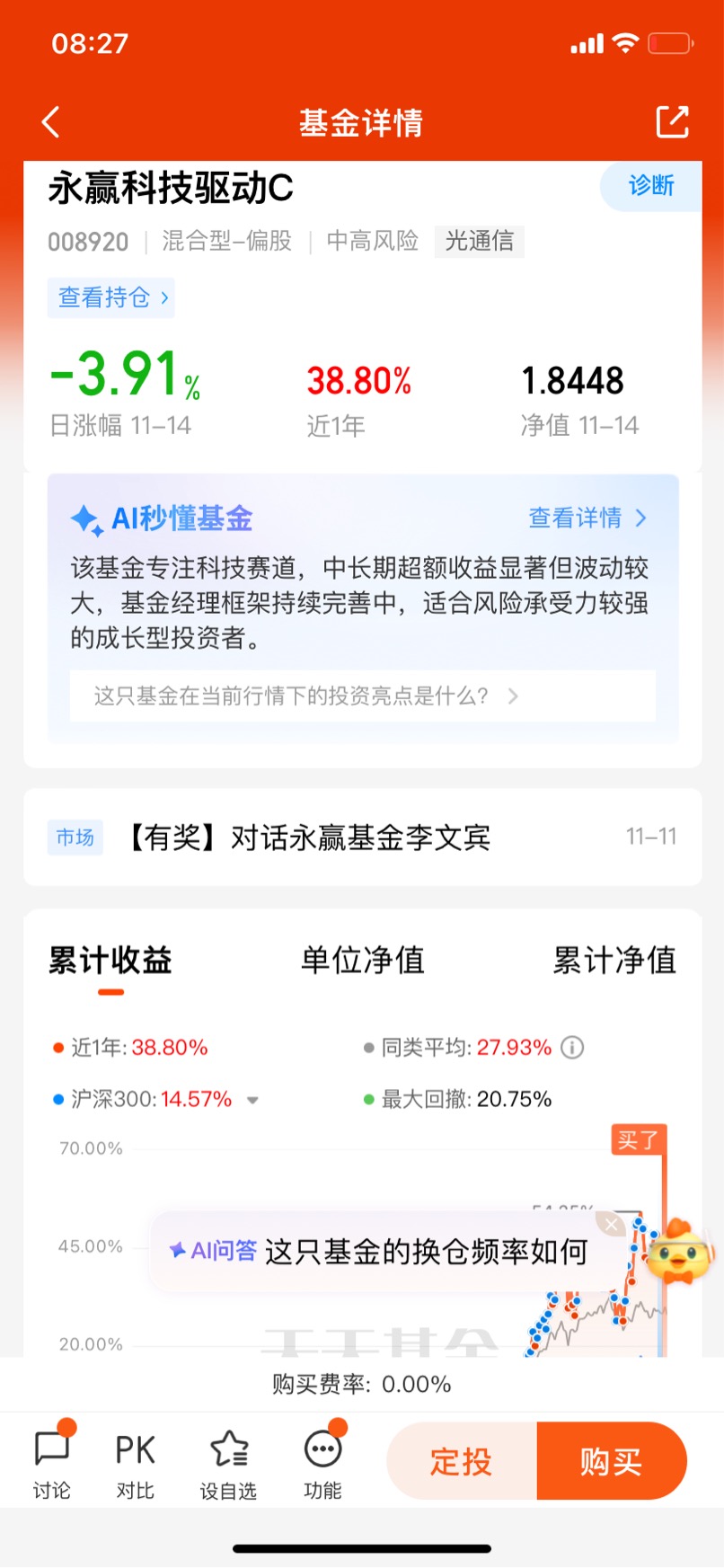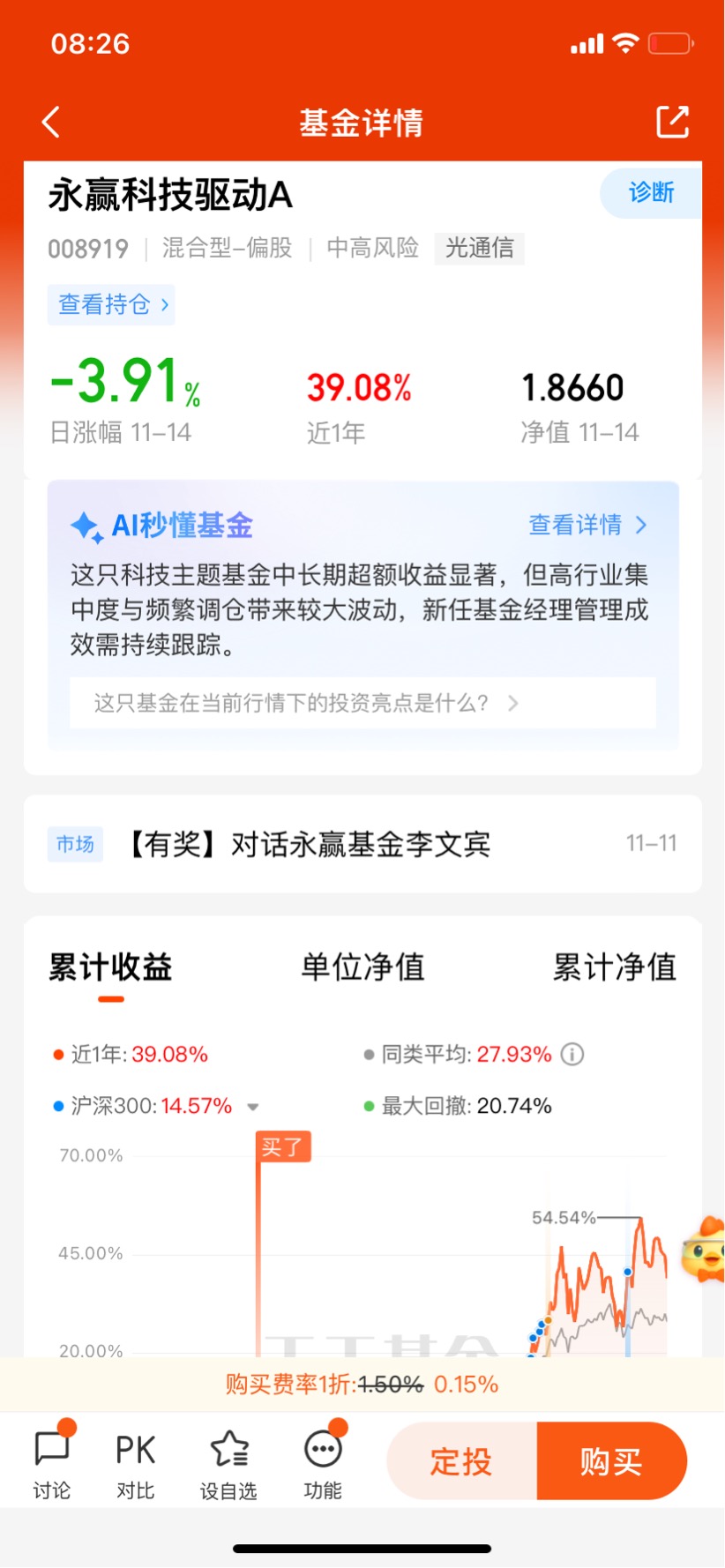 #科技实力派李文宾# 科技方向是本轮牛市的主线,我认为配置一款优秀的主动权益基金非常有必要,因为它是可以确保不错过科技主线的整体红利,获得基准收益的。李文宾管理的$永赢科技驱动C$