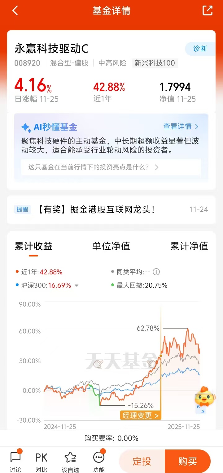 科技投资的本质是分享国家科技发展的长期红利,而非短期博弈。在当前科技板块轮动加速的背景下,选择像李文宾这样具备实业背景、左侧布局能力与跨行业分散策略的基金经理,通过永赢科技驱动C等专业工具参与,既能把握AI与军工双主线的投资机遇,又能有效控制风险,是普通投资者参与科技投资的理性选择。@永赢基金