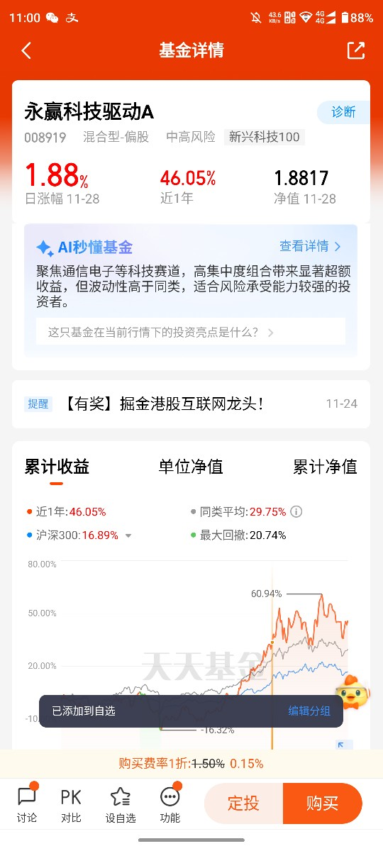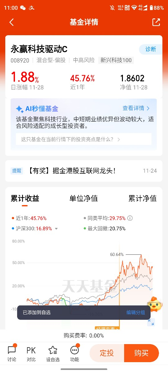 现在我依然坚定持有这只基金,还计划后续如果板块再回调就适当加仓。当前科技长牛趋势明确,有政策托底、需求支撑,再加上李文宾这样专业的基金经理掌舵,永赢科技驱动混合C大概率能持续把握科技赛道的优质机会。对于想布局科技领域的朋友来说,不用自己瞎折腾选个股,跟着靠谱的基金经理、选对优质基金,做好长期持有的准备,在波动中稳住心态,就能稳稳分享科技产业升级带来的收益,这也是我这段时间持有这只基金最真切的感悟,希望能给大家一点参考。@永赢基金