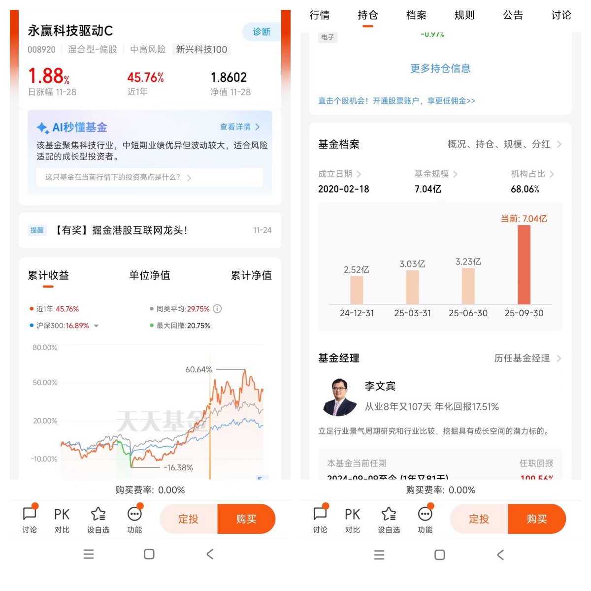 普通基民注意了,买基金是机会与风险并存的,有备而来,根据自己的实际情况选适合自己的产品,有舍才有得,那些高收益高稳定的产品只在梦里有,像李文宾经理的$永赢科技驱动C(008920)$成长性高,接受它的高波动,长期持有,科技产业的高收益值得期待。它有专业机构的研究深度,我有承受短期波动的大度,实现长期高收益的目标。