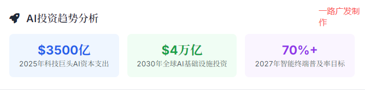 从更宏观的视角看,AI产业的长期发展趋势并未改变。全球科技巨头在AI领域的资本开支持续加码,美股四家科技巨头今年的AI资本支出预计将达3500亿美元。高盛预测,到2030年全球AI相关基础设施投资总额可能突破4万亿美元。这种天量投入为整个产业链提供了强劲的发展动能。