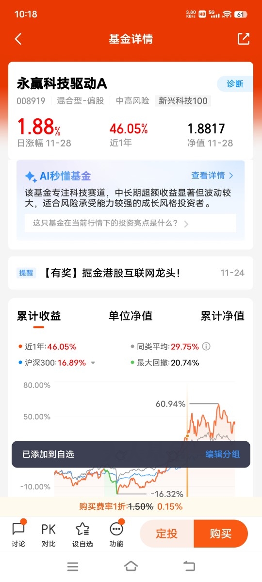 聚焦AI产业链与军工两大核心领域的$永赢科技驱动C$ ,在今年的行情中交出了亮眼答卷,年内斩获显著超额收益,成为投资者布局科技赛道的优质标的 。这一成绩的背后,离不开基金经理李文宾的精准操盘。作为拥有多行业研究经验和丰富管理经历的老将,李文宾现任永赢基金权益投资部联席总经理,其独创的“三维度验证法”——技术可行性、商业化进度、管理层执行力,确保了基金持仓标的的高胜率 。在AI板块前期热潮中,他提前布局核心环节,又在回调前精准止盈,成功规避大幅回撤;而在军工板块的配置上,精准把握装备升级与信息化趋势,为基金提供了稳健支撑。