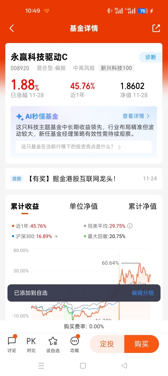 对于普通投资者而言,直接参与科技个股投资壁垒高、风险大,而$永赢科技驱动C$ 凭借基金经理的专业选股能力、科学的资产配置和长期优异的业绩,提供了便捷的投资工具。科技长牛的产业逻辑并未改变,当前的回调只是行情中的阶段性休整。无论是坚守纪律性的周定投,还是把握低位灵活加仓,选择永赢科技驱动C,都是借助专业力量穿越短期震荡、把握中长期确定性收益的明智之举。在科技赋能的时代浪潮中,这只兼具成长性与稳健性的基金,值得纳入投资者的长期持仓组合。