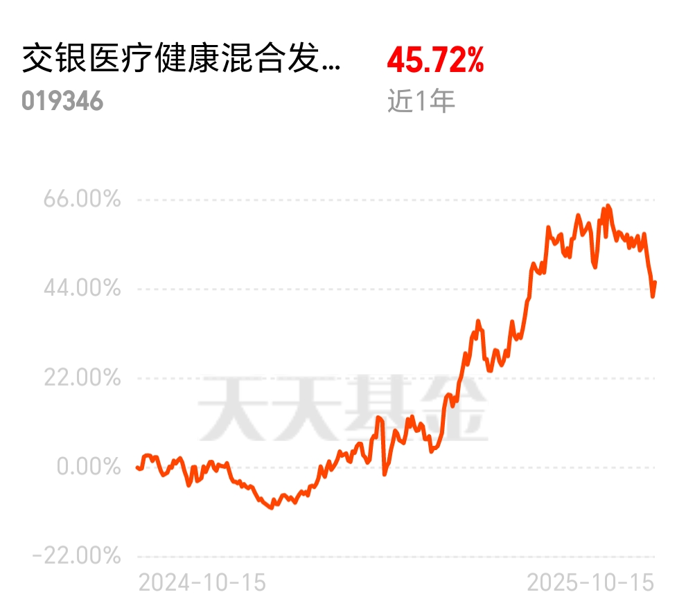 $交银医疗健康混合发起C$刚发现,近一年收益达到了45.72%,我喜欢