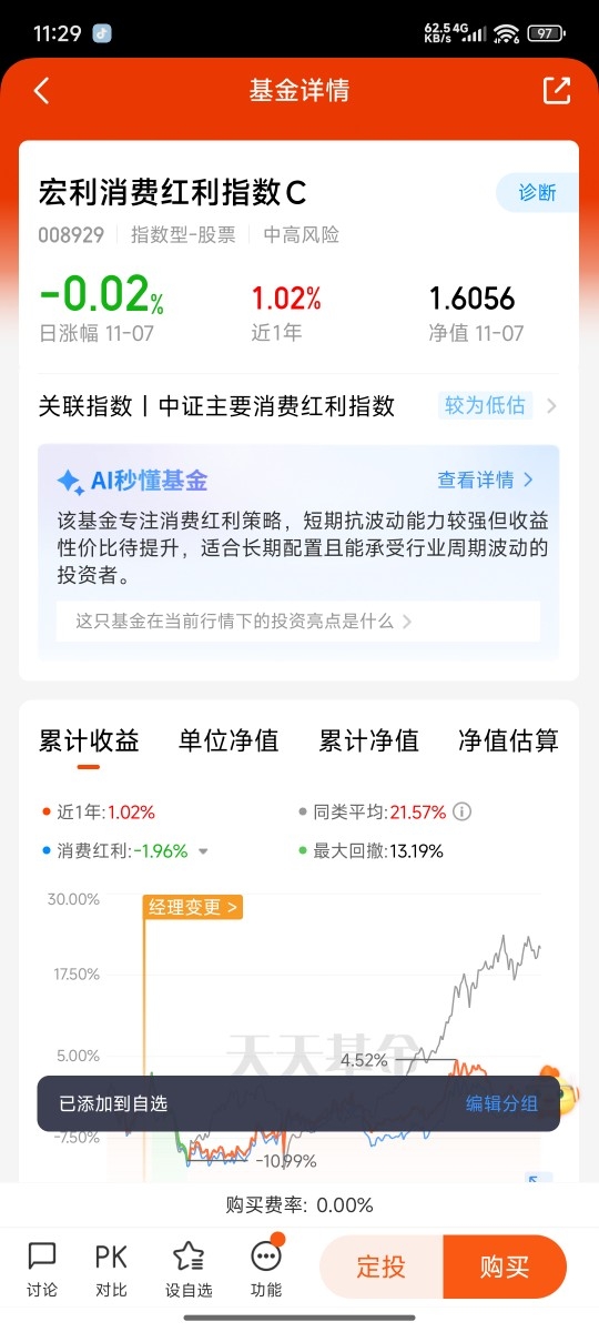 但新消费板块那么大,直接买个股风险太高(比如我追过的潮玩公司,股价波动能吓哭),选基金又怕踩坑“主动管理翻车”。纠结很久后,我锁定了“消费红利指数基金”,而宏利消费红利指数C,是我对比了10多只后敲定的“本命基”!
