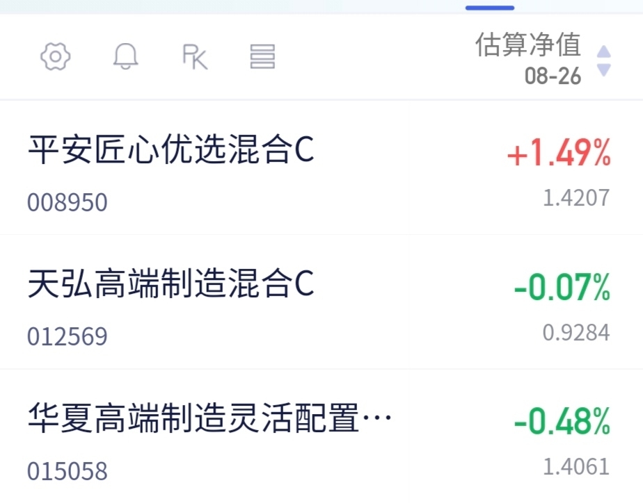 $天弘高端制造混合C$ 目前估值调整0.07%