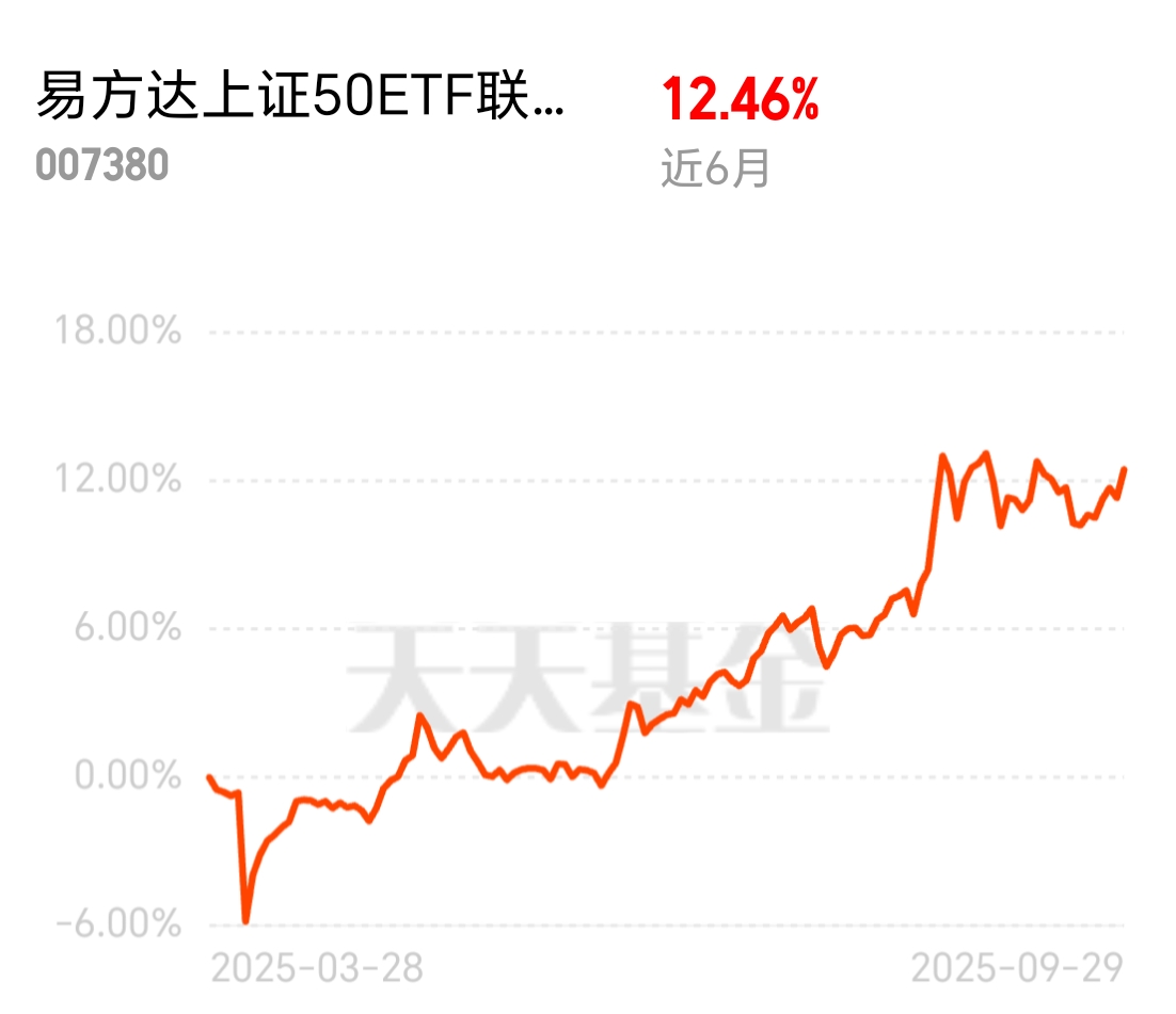 最近成长赛道热度特别高,资金都往这儿涌,但估值脱离业绩就危险了。均衡配置才靠谱,得有价值风格压阵。易方达上证50ETF联接C近6个月收益12.46%,配它准没错。