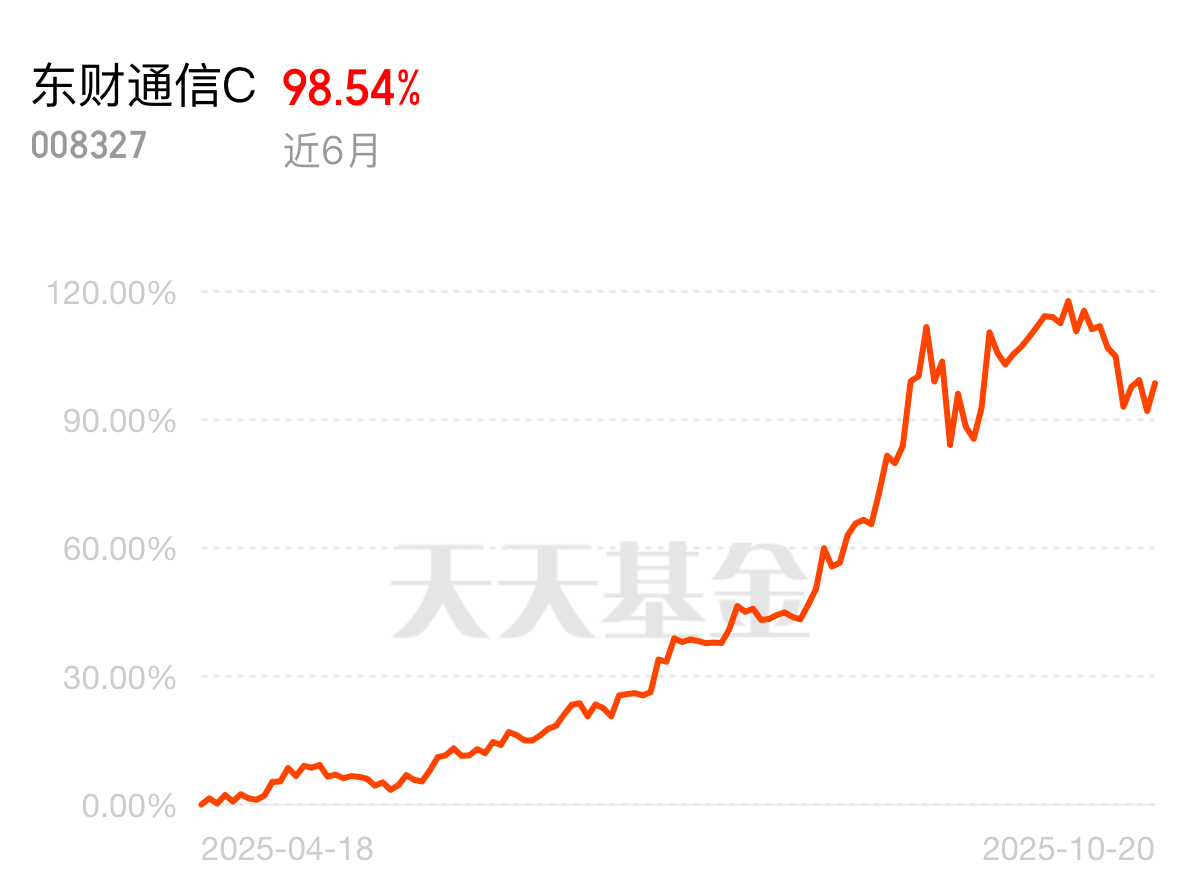 CPO技术成了光通信的新风口,解决了算力瓶颈,相关个股涨得停不下来。东财通信C重仓这些核心标的,指数跟踪不跑偏,近6个月涨了98.54%,抓住它就是抓住机会。