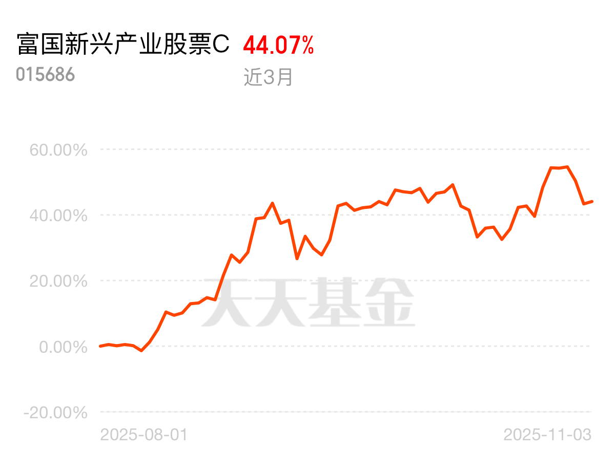 别犹豫了,今年科技就是主线行情,实力摆在那儿!富国新兴产业股票 C 紧跟趋势,今天估值涨了 1.07%,近三个月直接飙涨 44.07%,收益特别亮眼。它还重点拿着新易盛、中际旭创这些硬核企业的股票,这些公司技术硬、前景好,这只基金后续爆发力肯定强,值得关注。