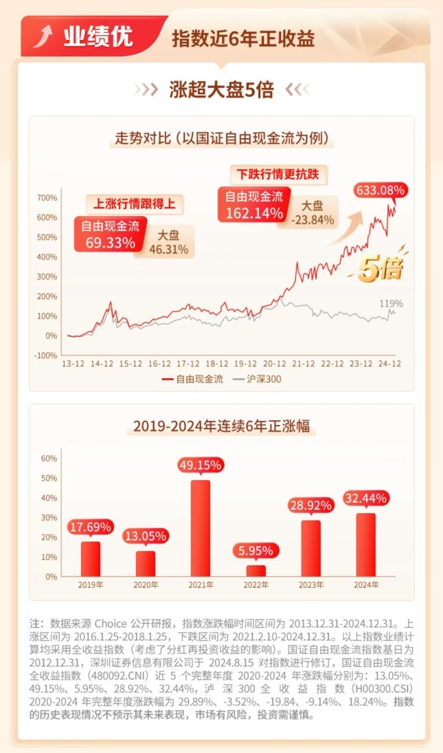 还是这里避险厉害,国证自由现金流连续6年正收益,涨超大盘5倍,华夏家的是首批跟踪