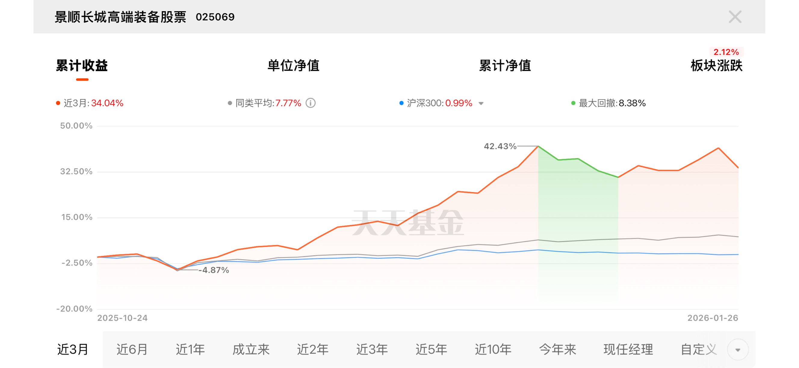 马斯克持续发力太空资源 + AI + 机器人,商业航天的发展前景不可估量,短期调整就是上车良机,$景顺长城高端装备股票$ 近 3 月 34.04%,布局卫星航天军工,能涨抗跌,浮动费率共赢超靠谱