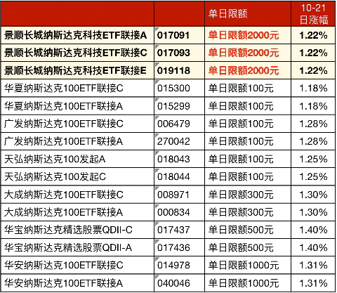 美股科技财报亮眼,长期业绩不错的,很多基金限额严重,景顺家ACE三个份额加起来6K,适合分批买入,其中E七免。