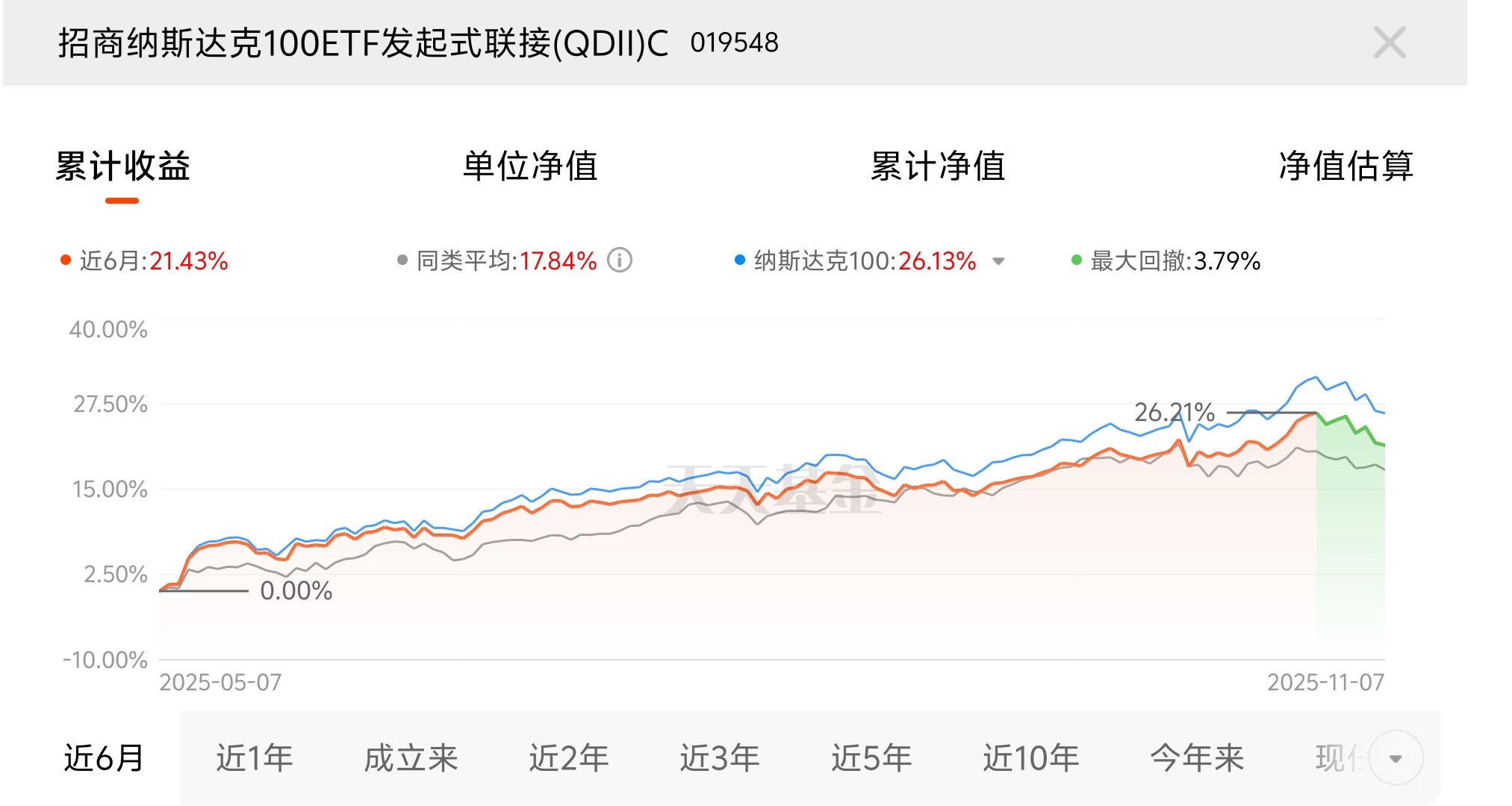 市场行情向好,美政府停摆将在本周末结束,美股三大指数集体上涨。招商纳斯达克100ETF联接(QDII)C近6个月收益21.43%,最后一天单日1000上车名额,小资金搭快车。