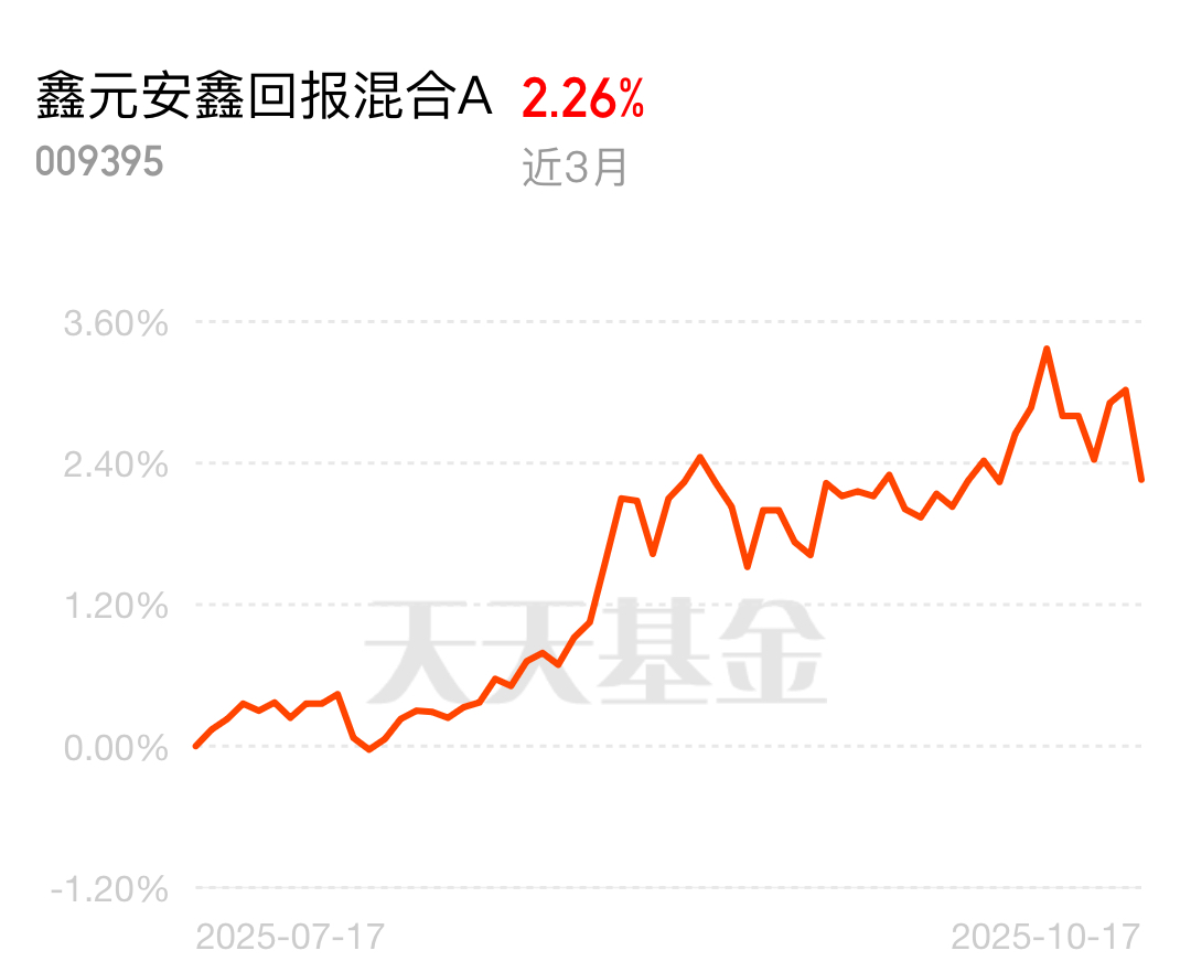 最近市场真让人纠结,股市天天轮动,今天这板块涨明天那板块跌,纯股基拿着心慌,跌起来肉疼;纯债基虽稳,可收益又跟不上预期。这种时候混合基就特合适,能平衡股和债的风险,还能沾点股市的机会。鑫元安鑫回报混合 A 就卡在舒服点上,当下位置正合适,想避点波动又能多赚点的,上车准没错!$鑫元安鑫回报混合A$