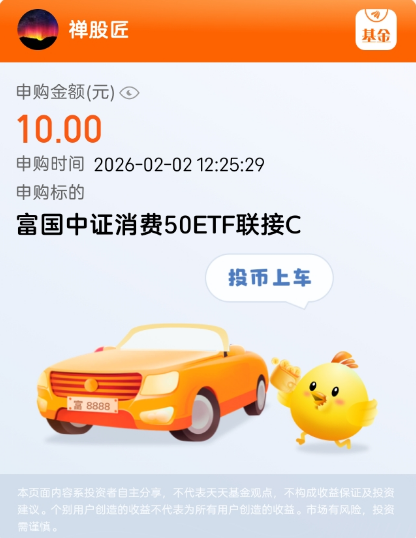 2026年春节假期号称史上最长,消费旺季一来,资金大概率会往消费板块扎堆。富国中证消费50ETF联接C(008976)说不定能在这波行情里“崭露头角”,我先关注,择机加码。