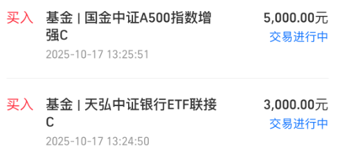 我加仓$国金中证A500指数增强C(OTCFUND|022486)$5000元!跟踪的中证A500这会看跌1.6%左右,昨天刚突破20日均线今天又给失守了,我大额加仓一笔,最近A股板块轮动太快了,看不出明显的主线,我就继续往宽基上调仓了,大趋势青春依然看好明年继续走牛,这只可以更轻松跟上行情。