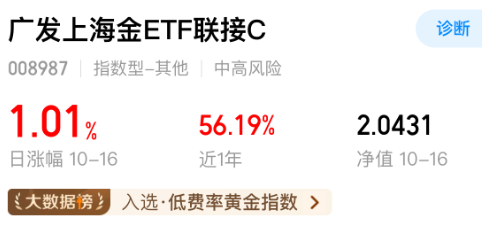 目前众多国际投行和机构分析师均预测黄金牛市还远没结束,金价大概率会继续走高,叠加美国就业数据疲软、10月美联储降息预期大幅提升,低利率环境会大幅提升黄金的吸引力,而且目前全球央行购买黄金的热情不减,咱们央妈已连续11个月增持了,为金价提供了长期支撑,我也遵循趋势积极布局,广发上海金紧跟国际金价,今年以来已涨超55%,而且是还入选了低费率黄金指数TPO1,可做为布局首选,最近基金页面也有发加仓福利,发车前可以去领哦。