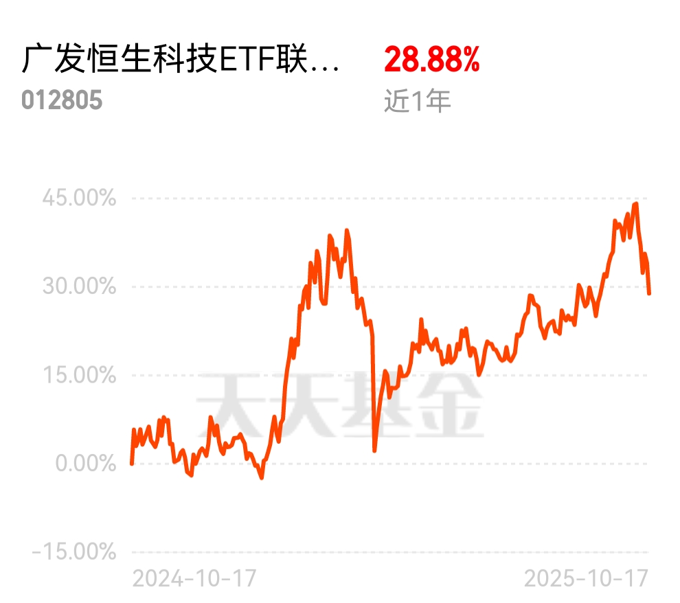 老美那边关税已经开始松动,降息预期又升温!港股科技股今天涨得不是一般好,恒生科技指数今天已经冲高超3个点!$广发恒生科技ETF联接(QDII)C$ 就得趁开涨的时候买!