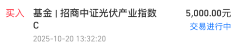 我加仓$招商中证光伏产业指数C(OTCFUND|011967)$5000元,跟踪的光伏产业指数盘中依托30日均线展开反弹、一度涨超1.8%,上周五低吸正确!就是买的有点少,趁这会看回落至涨0.2%左右,我直接大额冲上一笔,光伏目前估值低于历史98.6%的时间,长期持仓安全边际更高一些。