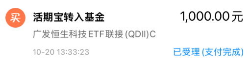 我加仓$广发恒生科技ETF联接(QDII)C(OTCFUND|012805)$1000元,跟踪的恒生科技指数盘中重新站上60日均线并展开反弹,这会看涨2.7%左右,进入10月以来,恒生科技持续出现调整,趁还没收复前面失地,我抓紧低吸一笔。