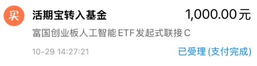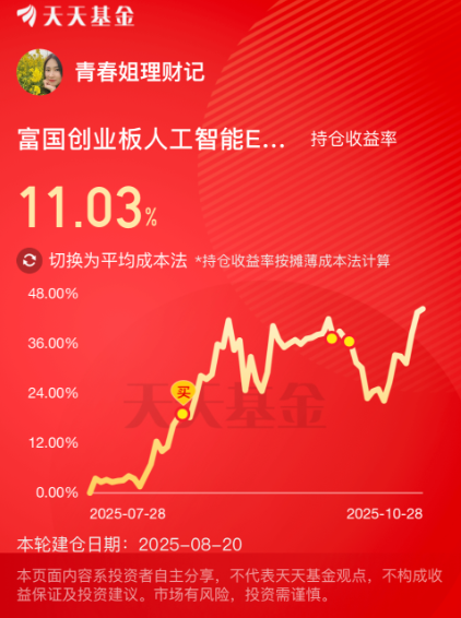 我加仓$富国创业板人工智能ETF发起式联接C(OTCFUND|024663)$ 1000元!跟踪的创业板人工智能指数早盘一度涨超2%,再次创出新高后有所回落,这里一旦突破站稳,就会打开新一轮的上涨空间,趁这会看小跌0.7%左右,我加仓一笔。