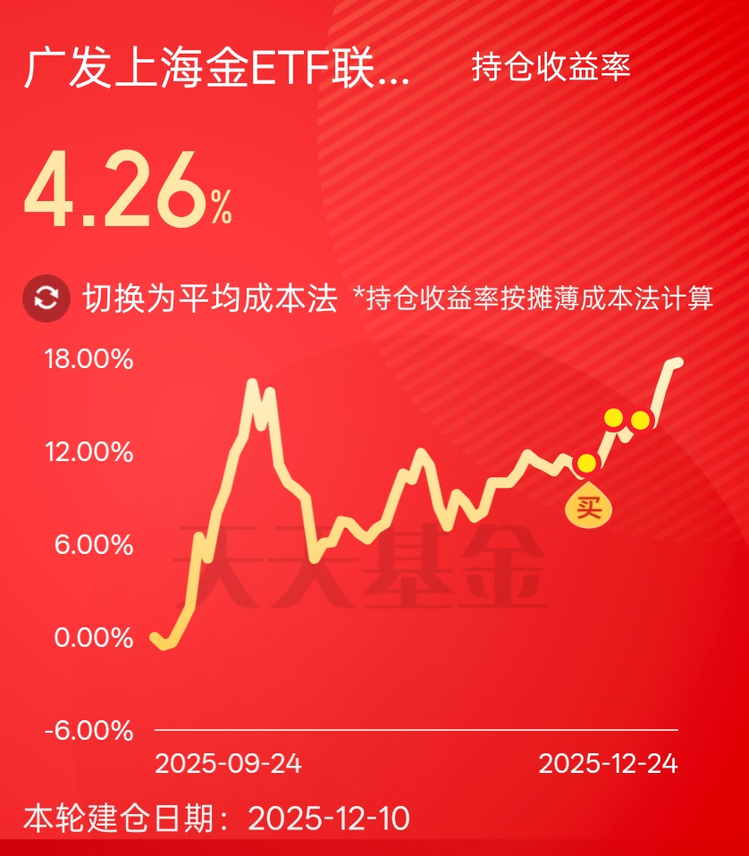 投资贵金属根本没有必要冒着刀口舔血的风险去无脑追涨这种高溢价标的,有很多没有溢价的产品可供选择,比如黑马上车的$广发上海金ETF联接C(OTCFUND|008987)$,跟踪上海黄金期指,与国际金价紧密联动,是正宗的黄金标的。