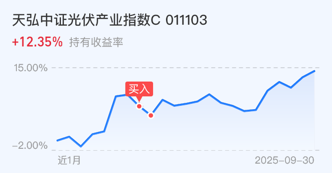 光伏板块低开早盘震荡高走,盘中拉升量能递减板块拉升没能持续也是转为了回落,截止发稿维持小涨跌幅。板块无力不好直接高走,短期难免波动,不过板块下方支撑足,短期震荡空间应有限,待震荡充分才继续高走。今日不动。今日$天弘中证光伏产业指数C$不动。$天弘中证光伏产业指数C(OTCFUND|011103)$
