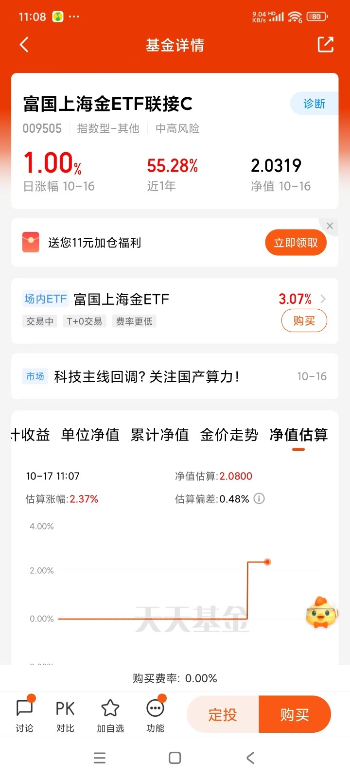 黄金板块继续走强,拿住$富国上海金ETF联接C$近一年55.28%,这波赛道选黄