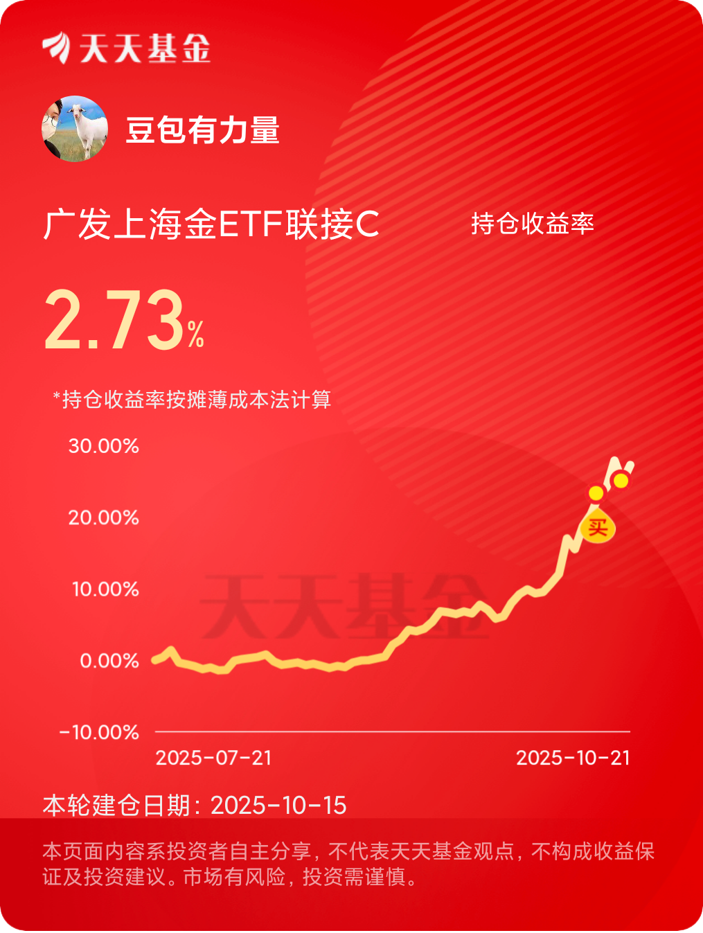周二的黄金又涨了,$广发上海金ETF联接C$ 成功收涨1.91%,前面低吸的筹码都成功获利了。
