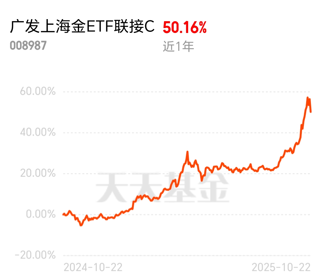 越是回调我越进场,别的不说$广发上海金ETF联接C$1年能猛冲到50%不是假的,