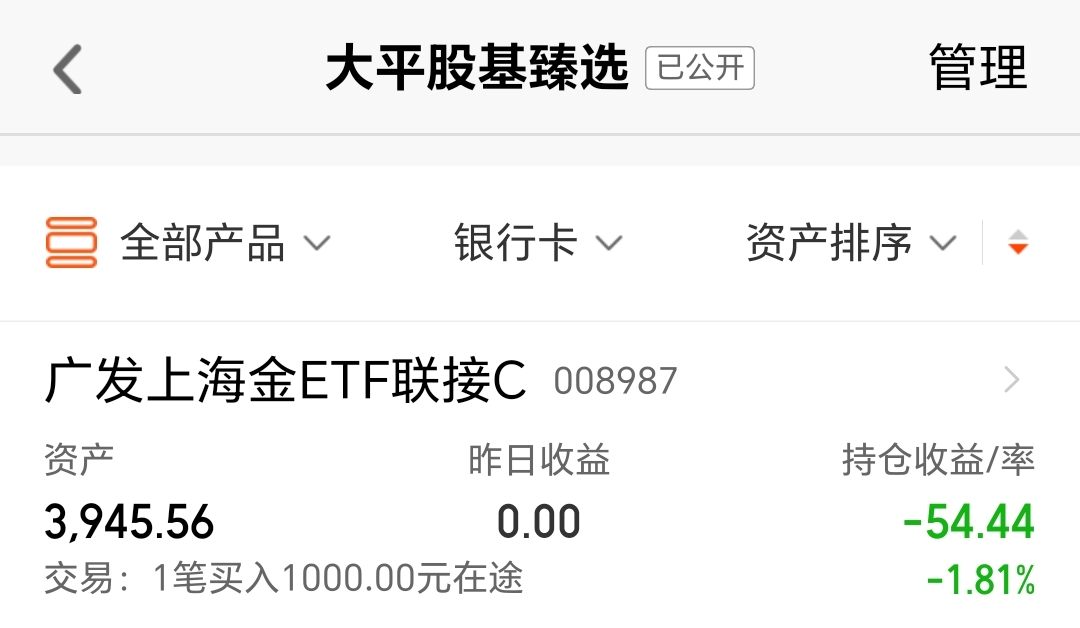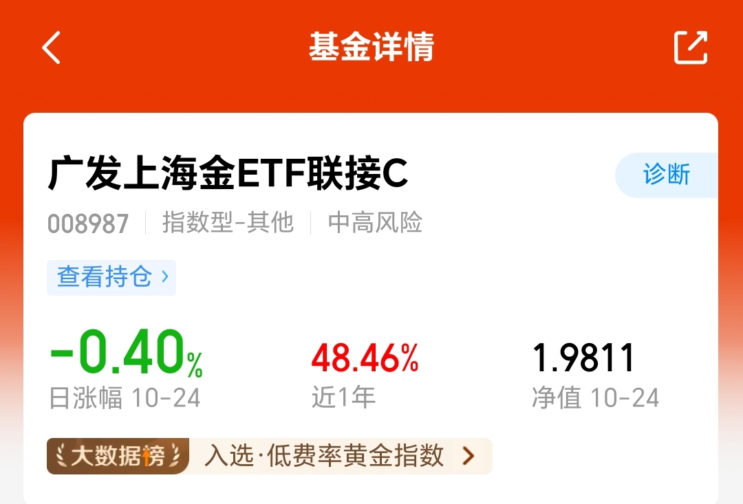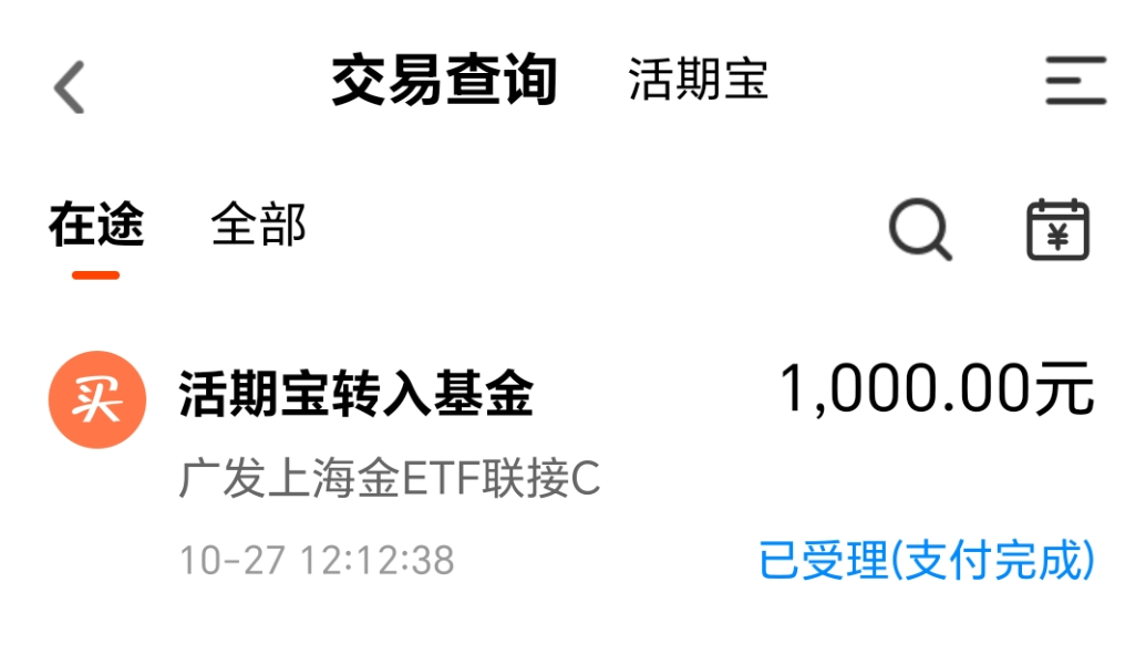 今天我买入$广发上海金ETF联接C(OTCFUND|008987)$1000块钱。